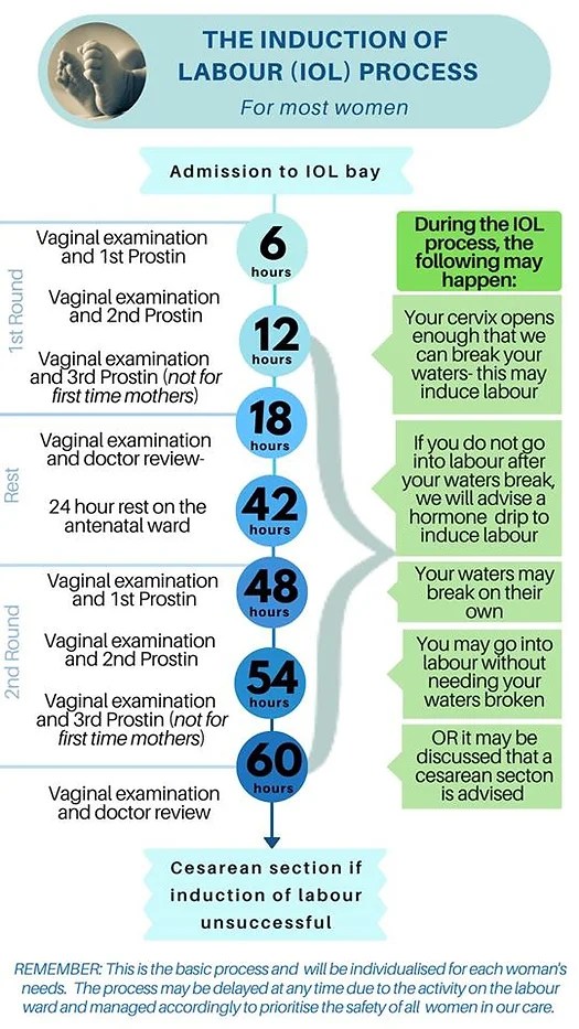 More details on the process of induction of labour can be found on the NHS website and on the NICE website.